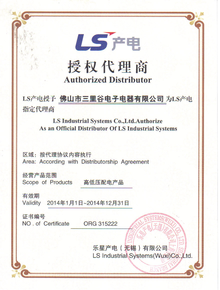 佛山市三里谷電子電器有限公司成立于2004年,是韓國(guó)LS產(chǎn)電華南地區(qū)核心代理商;同時(shí)專業(yè)代理、經(jīng)銷日本富士、臺(tái)灣士林、法國(guó)海格電氣、上海康比利儀表、貴州長(zhǎng)征、深圳泰永科技、西安森源等國(guó)內(nèi)外知名品牌高、低壓元件及工業(yè)電氣的公司。以專業(yè)的技術(shù)支持,優(yōu)質(zhì)的售后服務(wù),承接各項(xiàng)配電及自動(dòng)化設(shè)備改造工程。